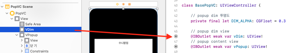 BasePopVC에 vDim과 vPopup을 연결합니다.