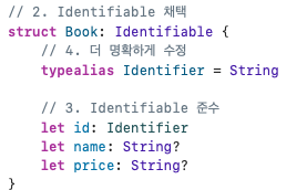 id를 사용하기 위하여 Identifiable을 채택합니다.