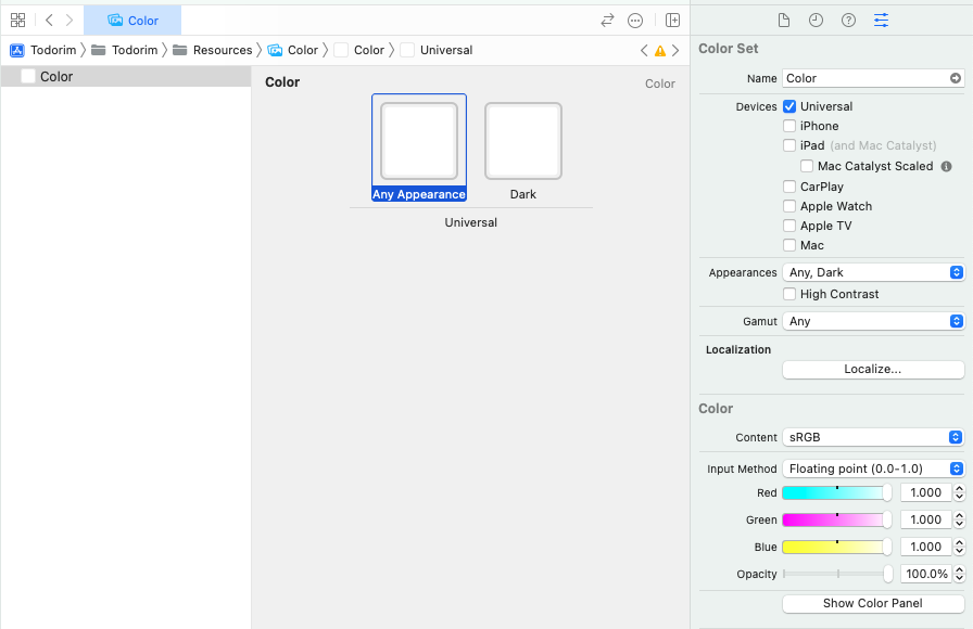 Assets Catalog 생성 - Colors.xcassets