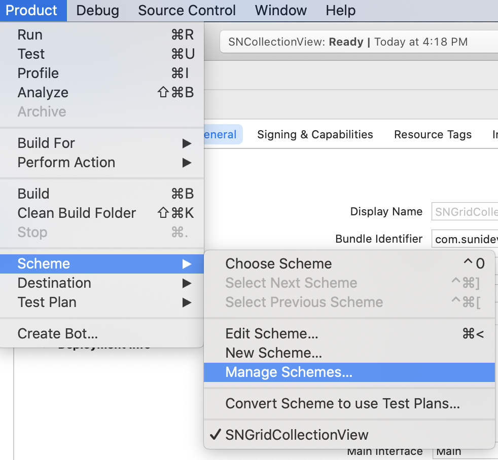 Product -> Scheme -> Manage Scheme을 클릭합니다.