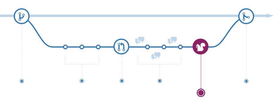- 하지만 pull request에서 팀원 간의 충분한 리뷰와 피드백 진행되지 않으면 배포 코드에 버그가 발생할 수 있으므로 주의해야 합니다.