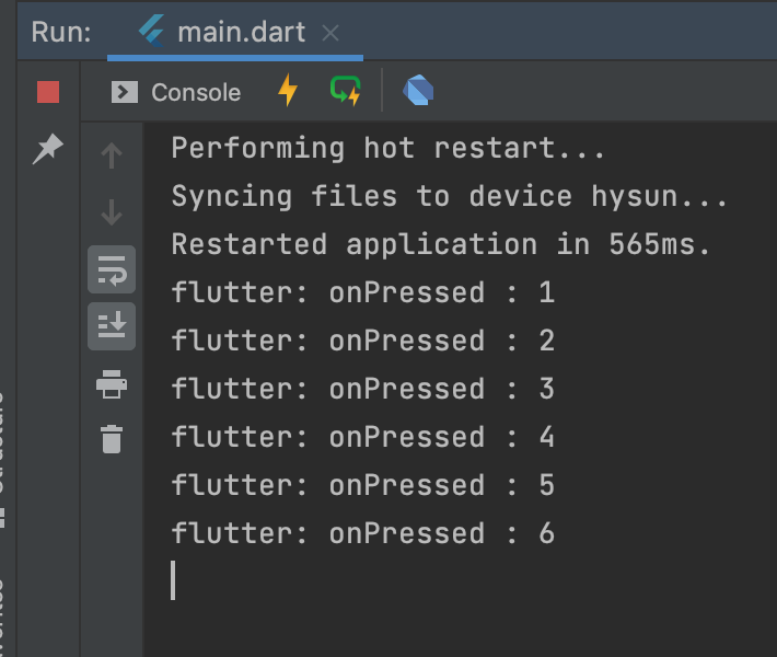 _count의 증가에 따라 Text 위젯이 build 되면서 변화합니다!