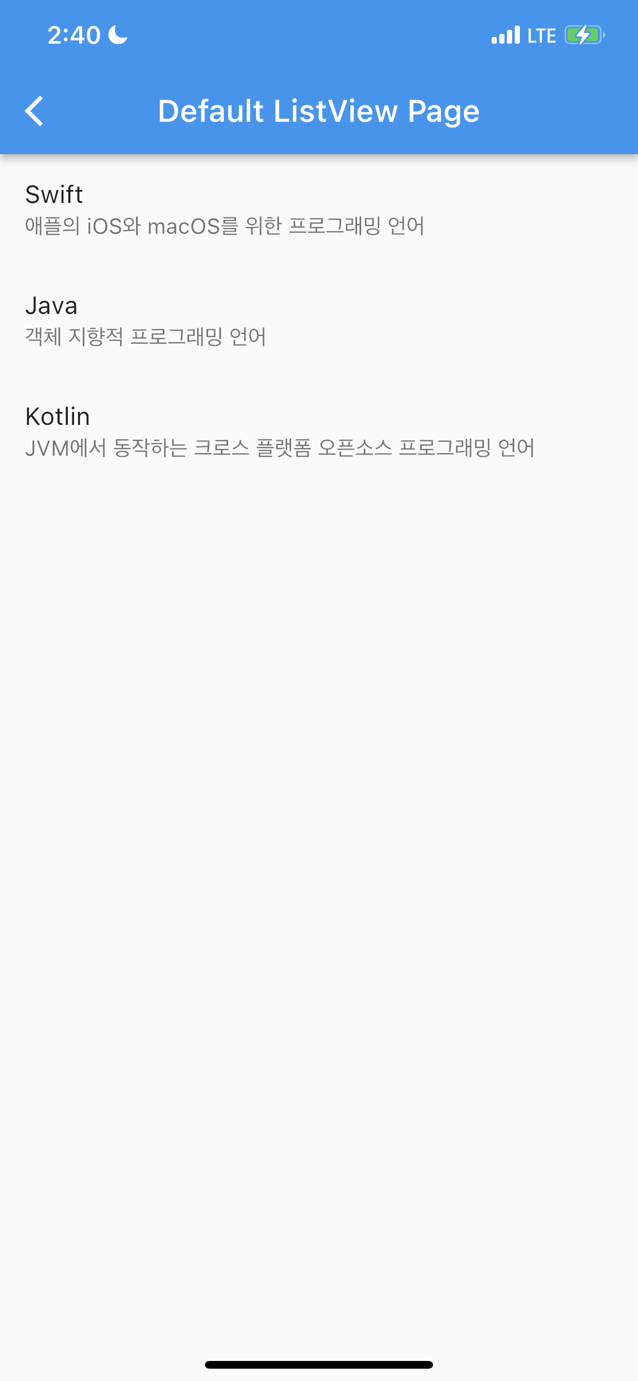 BasicListTile(BasicListData('Kotlin', 'JVM에서 동작하는 크로스 플랫폼 오픈소스 프로그래밍 언어')),
