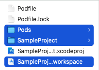 * {프로젝트명}.wcworkspace: Pods를 사용할 수 있도록 포함된 워크스페이스.